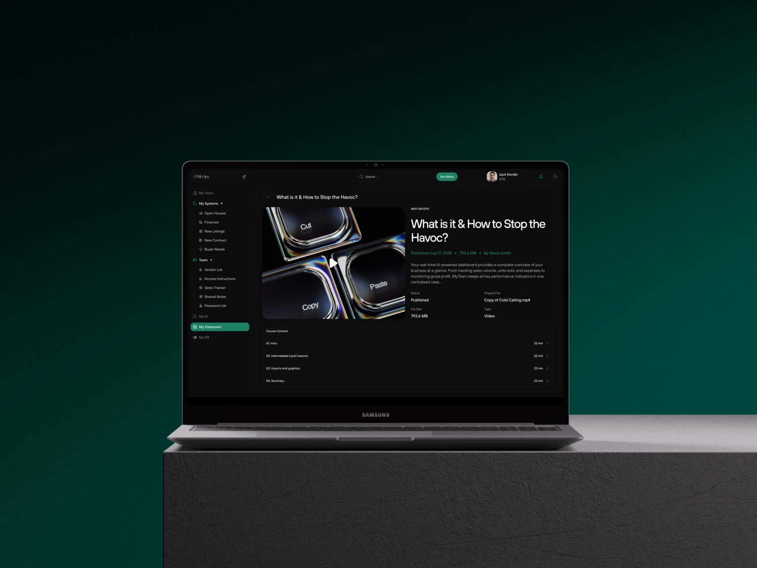 Building and maintaining a successful real estate team requires strong training systems, and MyClassroom is designed to make that process seamless. This feature allows you to upload and share educational content, providing your team with the knowledge and skills needed to perform at their best. Whether it’s training videos, scripts, or playbooks, everything can be stored and accessed in one place for easy learning and reference. Beyond user-generated content, MyOps will also provide exclusive training materials, ensuring agents and teams have access to expert insights, best practices, and industry-leading strategies. As your business grows, MyClassroom scales with you, allowing new agents to access the same high-quality, AI-enhanced training, while team leaders can continuously update and refine content to keep their teams sharp and competitive.